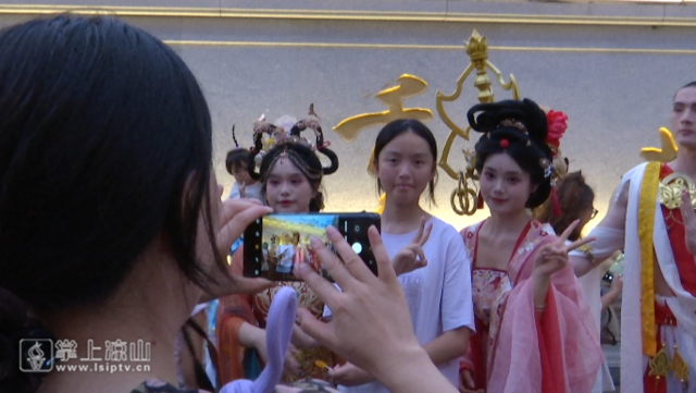 晚上八点,唐园已是人潮涌动,国风达人们身着华丽的汉服以精致的国风妆造亮相,仿佛从古代画卷中走出的人物,与夜幕下的唐园交相辉映,市民游客们纷纷掏出手机拍照记录,现场气氛热烈。璀璨灯光下,歌舞表演、儿童剧场秀、广场巡游等活动轮番上演,为市民游客们带来一场沉浸式国风体验。“我知道今天西昌唐园有活动,所以专门穿上汉服来参加,活动办得挺热闹,很大气,节目也很丰富。”游客杨女士说。