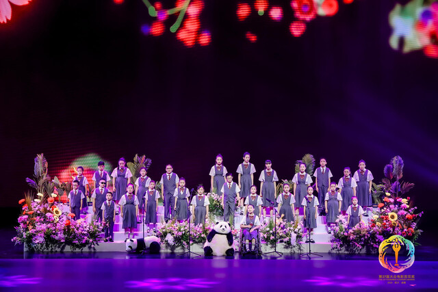 “送你一朵小红花,开在你心底最深的泥沙……”紧接着,一支特别的合唱团带来了电影《送你一朵小红花》的同名主题曲。尽管有视力障碍,但来自视界美好亲子合唱团的孩子们,将旋律织造为一朵朵“小红花”,将温暖送给现场观众,让大家感受到电影与音乐的能量。