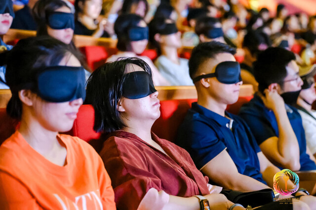 除了听觉上的呈现,开幕式也带观众走进了视障观众的特殊电影世界。在主持人的邀请下,现场观众带上眼罩,屏住呼吸,在无障碍电影解说员段梅的解说中走进电影《流浪地球》。