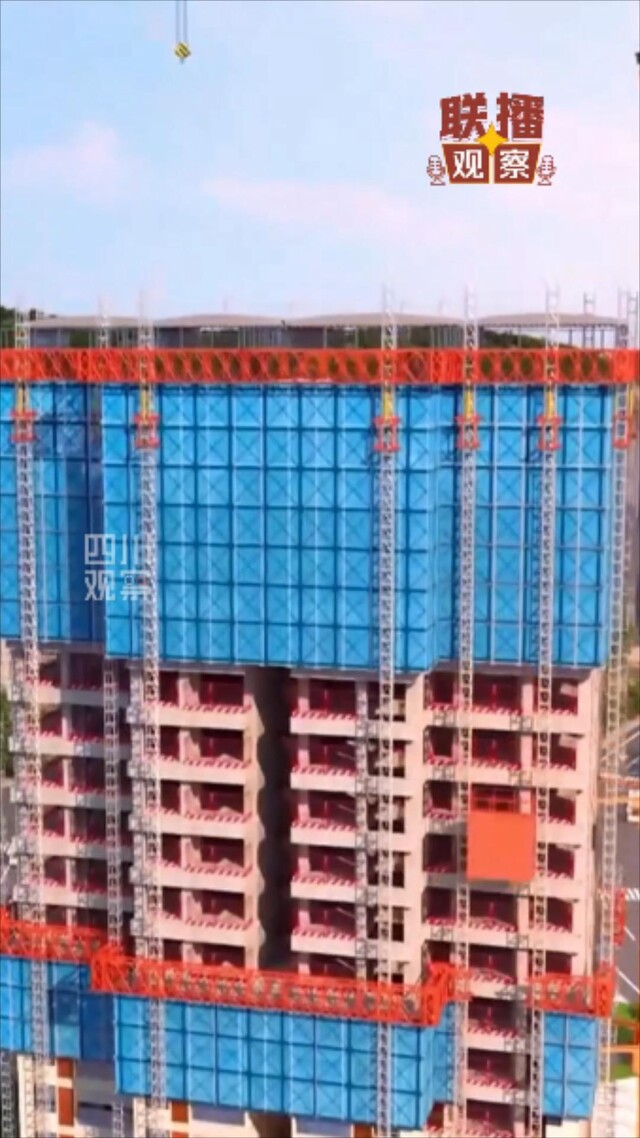 这个“师傅”的全名叫“双平台工业化造楼机”,这次在成都盖楼也是它首次亮相。一栋总高25层的楼房,覆盖4层楼的上层平台,顶升20次就可以完成主体结构建造;而下层平台同步开始外墙施工,工作效率直接拉满。