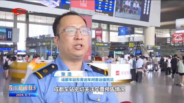 成都车站东客运车间客运值班员 张浩:今年暑运,成都车站密切关注车票预售情况,精准实施“一日一图”,日均加开41列,我们还加强与地铁、公交部门的联动,打通重点旅客出行的“最先一公里”和“最后一公里”,确保重点旅客的顺利出行。