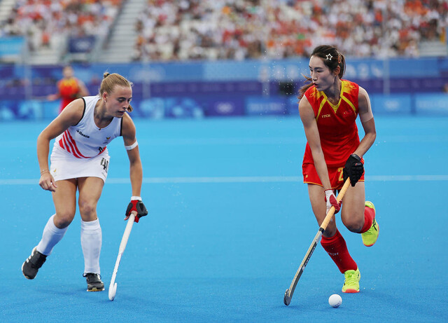 比赛刚开始,比利时队即发起猛烈进攻,迅速获得短角球机会,但中国队的姑娘们顶住压力,稳住阵脚,展现出坚韧的防守,并耐心组织反击。第一节,双方都展现出了坚强的斗志,0比0战平。