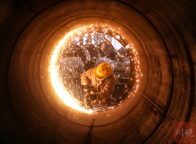 8月25日,眉山市的中建钢构(四川)有限公司的工人冒着高温抢进度、忙生产、赶订单。 张忠苹 摄