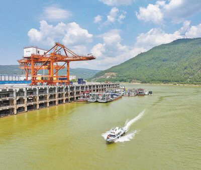 8月24日拍摄的广元港码头。该港口位于嘉陵江中上游,是内陆地区联系长江的重要水运口岸。本报记者 雷 声摄