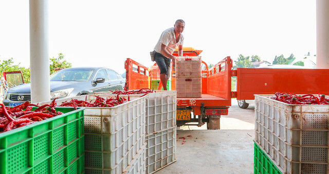 “种了一辈子的庄稼,第一次种出品相、色泽这么好的辣椒!”资阳市安岳县永顺镇大千村60岁的李朝建,开着三轮车在辣椒地与仓库间来回忙碌,额头上冒着汗珠,衣服的后背也浸湿了一大片,脸上却满是喜悦之情。李朝建有高兴的理由,种了一辈子地,外出打工多年,如今在辣椒基地领着村民干活,每月工资3000元,还不耽误打理家里的10多亩柠檬。