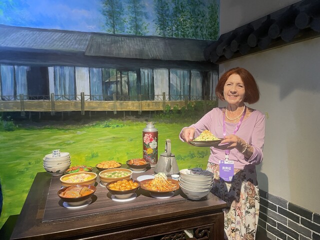 一碗清茶、几张木桌、一个小院,漫步牌坊村,一家特色民宿吸引了媒体嘉宾们的目光。吉尔吉斯斯坦《比什凯克晚报》第一副总编辑妮娜•尼奇博洛娃走进民宿,在品茶后意犹未尽,“来到这里,我感到非常快乐和平静,村庄浓厚的历史文化底蕴和特色旅游资源让人印象深刻。”妮娜•尼奇博洛娃说。