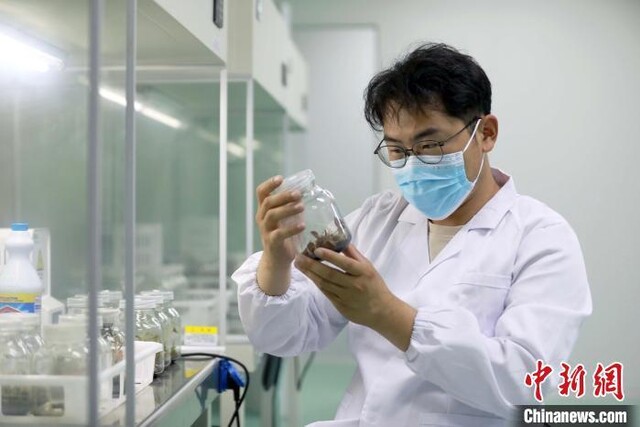 近日,詹皓淳在育种室工作。中新社记者 王磊 摄