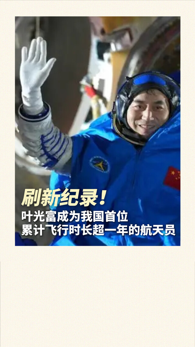 刷新纪录!叶光富成为我国首位累计飞行时长超一年的航天员