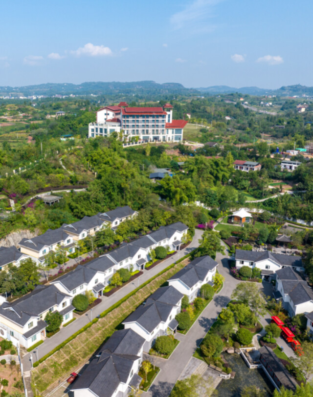 图为航拍广安区利用东西部协作项目资金建成的大龙镇光明村浔栖江南度假区。张国盛/摄