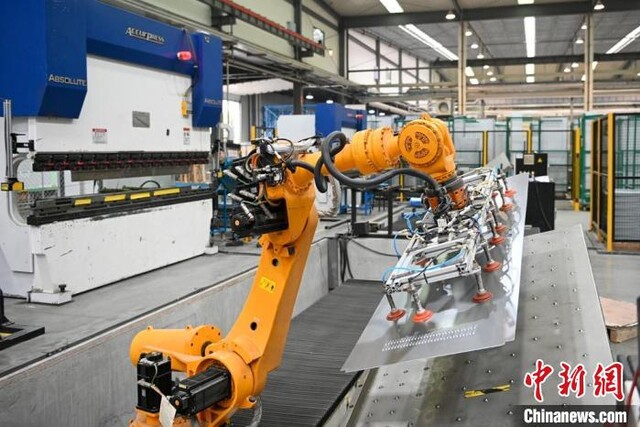 生产线上机械臂正在传送材料。记者 刘忠俊 摄