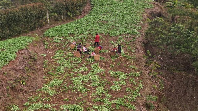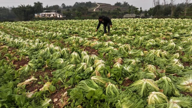 “这片芥菜我们是昨天开始砍的。一般要晒两三天的太阳。为什么要晒呢?因为叶子全部晒蔫了以后,装车的时候就不会弄烂。今年我种的芥菜大概有500亩左右,2月份收完以后,3月开春这片地全部栽种早高粱。”长宁县力行农机服务专业合作社负责人 胡良银说。
