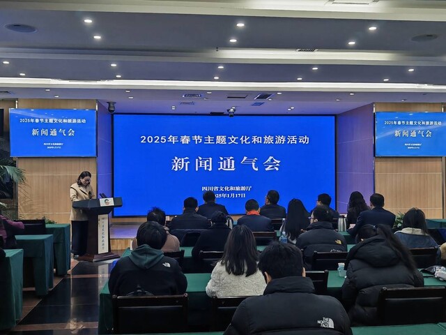 来川过大年,安逸又巴适。1月17日,2025年春节主题文化和旅游活动新闻通气会在成都举行。记者从会上获悉,2025年春节,全省文旅系统推出涵盖非遗传承展示、公共文化服务、文博展览展出、惠民文艺演出、文化娱乐活动、文旅休闲消费等精彩纷呈、内容丰富的主题活动,营造浓郁年味,共度祥和春节。