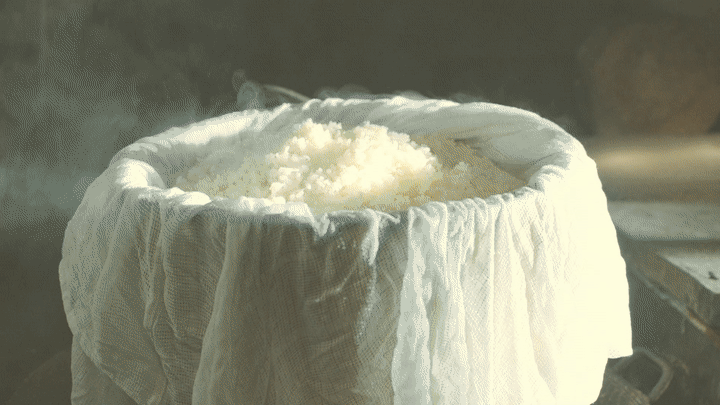 醪糟的传统手工艺并不复杂:糯米浸泡过夜,洗净蒸熟,用酒曲拌匀后放入缸里;轻轻压平,中间做个小坑,再用棉布包好,等待醇香的味道散溢出来,基本就算酿造成功了。