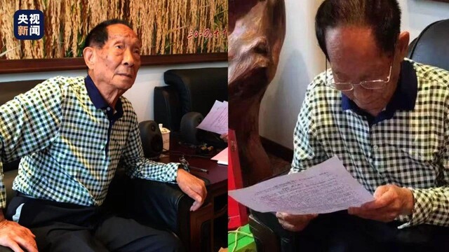 图丨2015年9月,袁隆平爷爷第一次听歌曲小样