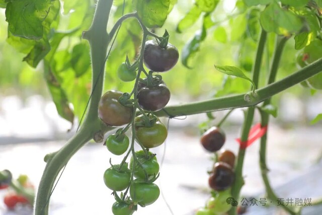 “我找到个迷彩花纹的!”“我找到这个白色的,抿甜~”在大自然采摘园里,大人小孩挎着篮子穿梭于藤架,活像在寻宝。十多种小番茄各有绝活:绛紫色的“黑牡丹”透着神秘,“红粉佳人”红彤彤招人爱,“白玉”甜得像糖水泡过。