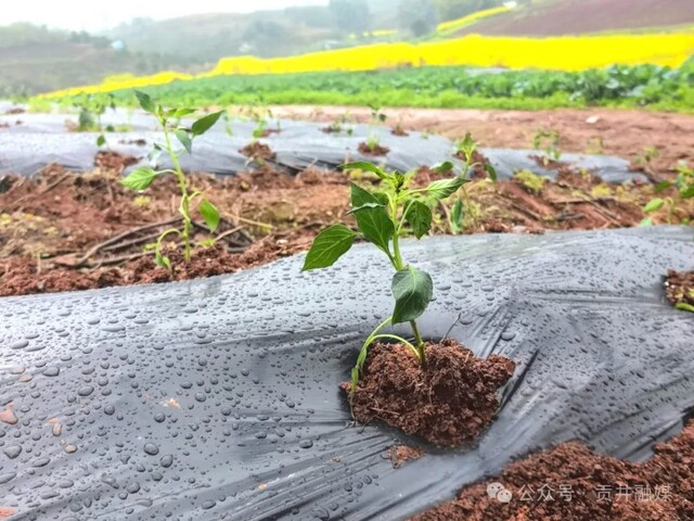 春回大地,龙潭镇的田间地头正上演着一场“辣椒移栽大作战”,村民忙着移栽辣椒苗,挖坑、栽苗、覆土、压实.....干劲十足。不一会,一排排辣椒苗整齐排列在地块内,成片绿油油的辣椒苗瞬间让大地变得生机盎然,谱写着丰收的前奏。