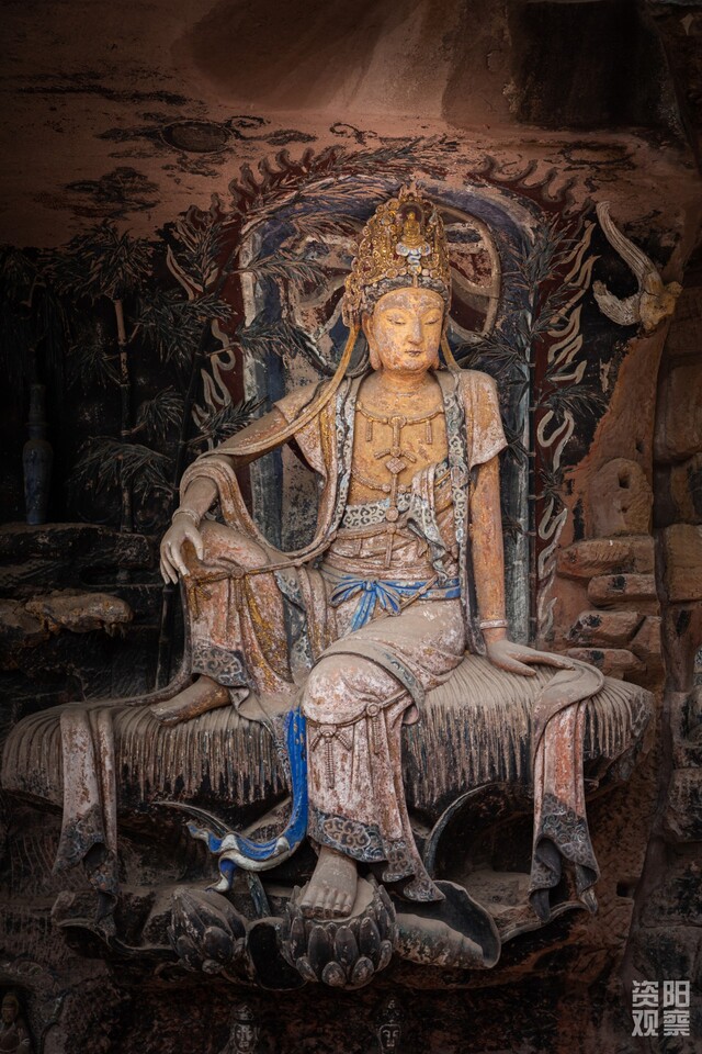 接着来看石窟界的“扛把子”:安岳石刻“上承龙门,下启大足”,以“古、多、精、美”闻名,摩崖造像达10万尊,摩崖石刻经文达40万字。安岳也被称为“中国石刻之乡”。毗卢洞的紫竹观音被誉为“东方维纳斯”,堪称石刻界的颜值担当。