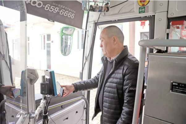 乘客刷码乘车。