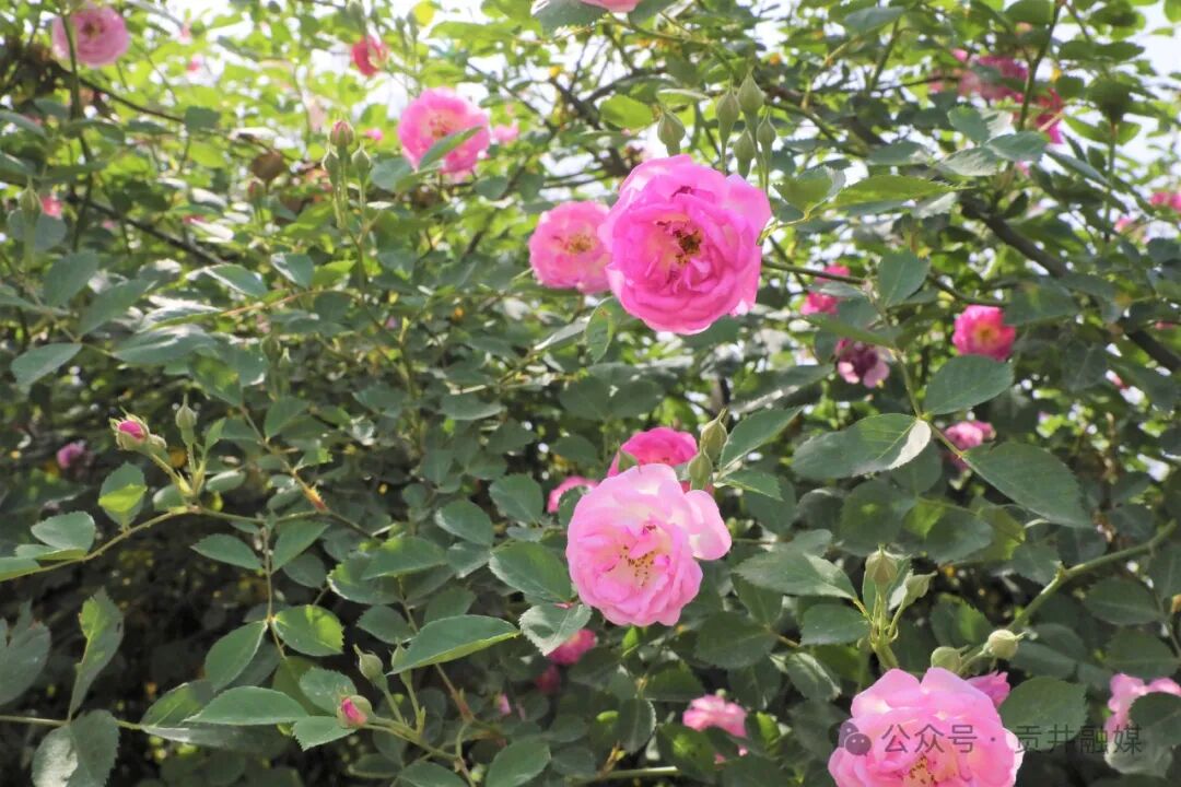 一朵朵蔷薇,无论是单瓣的清雅,还是复瓣的华丽,都与绿叶相互依偎,层层叠加,展现出绚丽多彩的画卷。