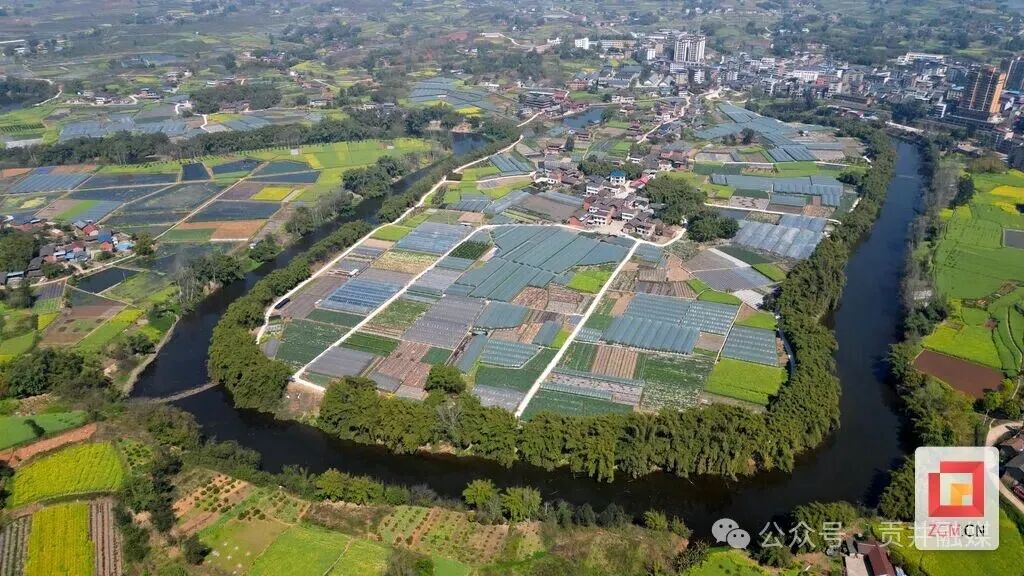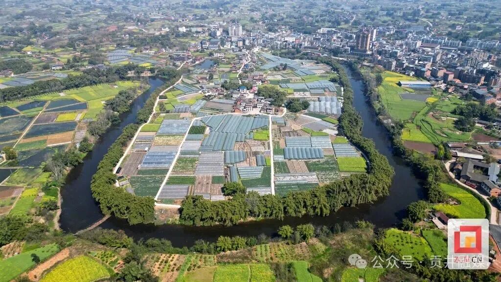 图为蜿蜒流淌的旭水河为蔬菜产业提供源源不绝的用水。(来源:自贡融媒罗乐 李秋钥)