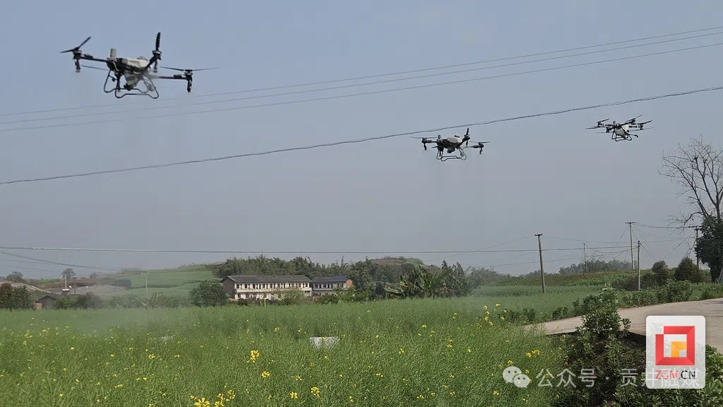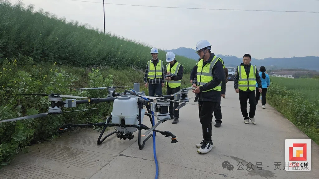 近年来,该区持续推进农业机械化生产,通过无人机植保作业有效提升田间管理效率。近日,贡井区组织开展小春油菜无人机统防统治作业,为3000亩油菜田提供科技助力。