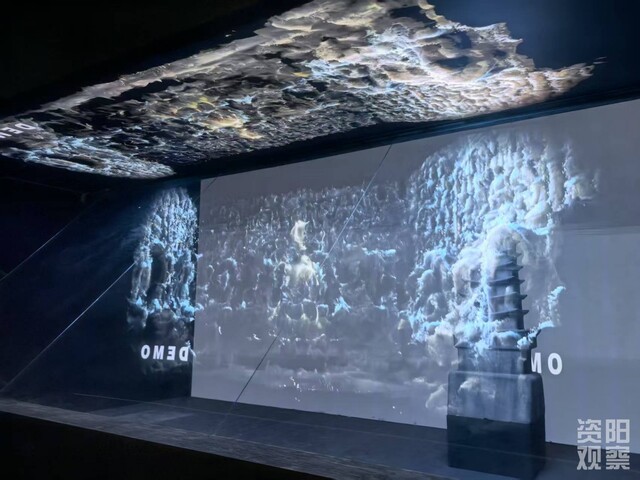 踏入展示中心,一条会“呼吸”的走廊便映入眼帘。墙面复刻茗山寺风蚀肌理,指尖触碰似能感知千年风雨;穹顶流动光影模拟崖壁,恍若唐宋山风携历史气息扑面而来。“这些设计就是要让游客一进门就沉浸在安岳历史长河中。”四川石窟文化旅游开发有限公司营销策划张国柱话音未落,前方的3D打印的紫竹观音便随着音乐光影变幻四季:春披新绿、夏绕荷影、秋覆金叶、冬落白雪,每一季都赋予观音别样神韵。