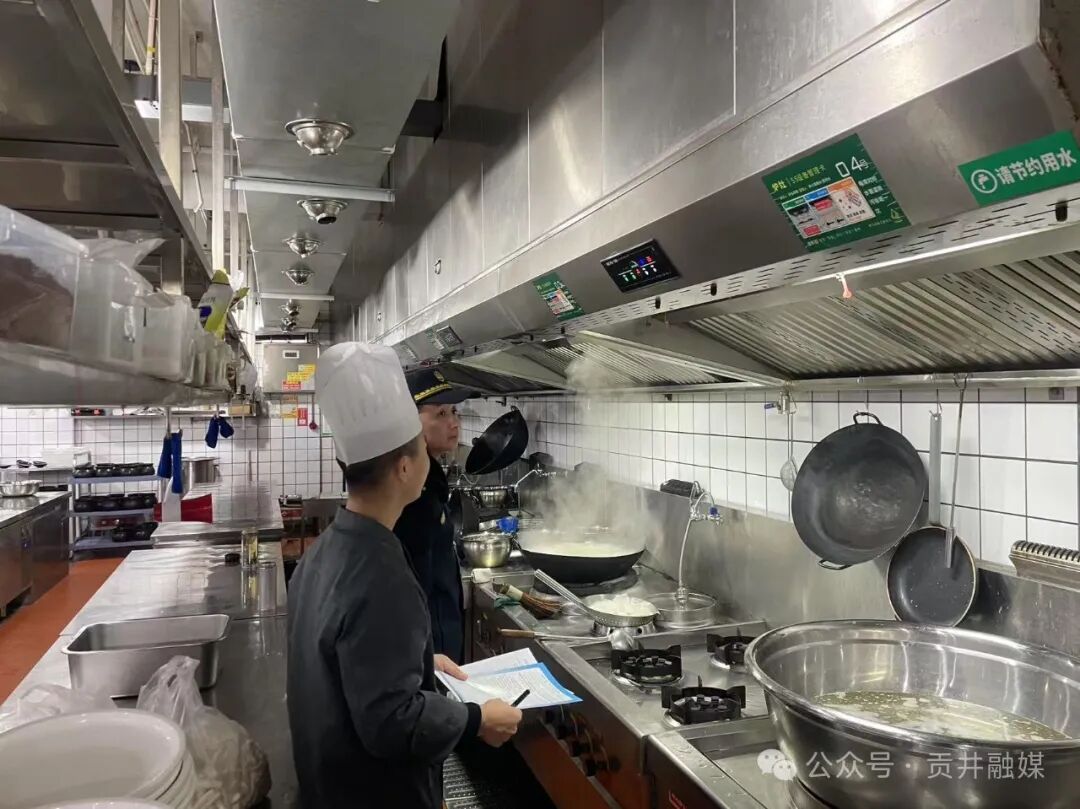 在数字化治理背景下,贡井区积极探索“互联网+监管”模式。通过自贡市餐饮油烟在线监测平台,对机关事业单位食堂的油烟排放及净化设施运行状况进行24小时实时监测,实现“云端盯防”。针对大中型餐饮及反复投诉单位,则引入第三方专业检测机构开展油烟排放检测,确保数据权威性。