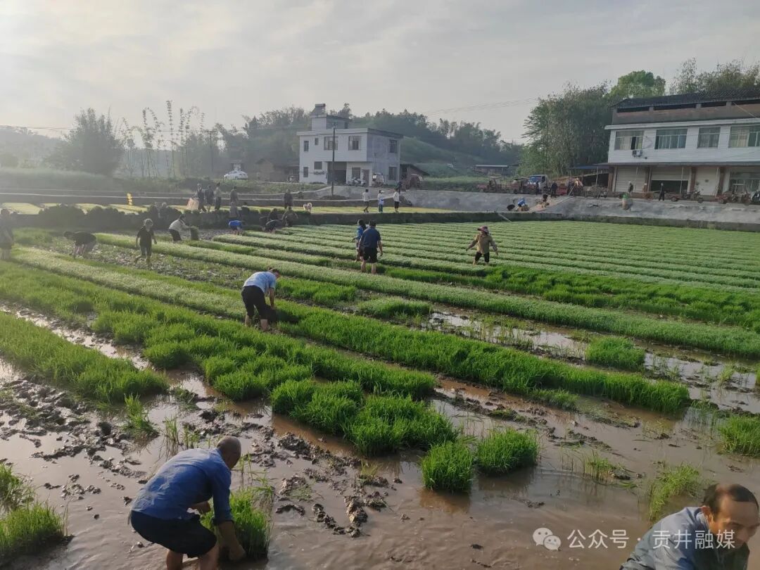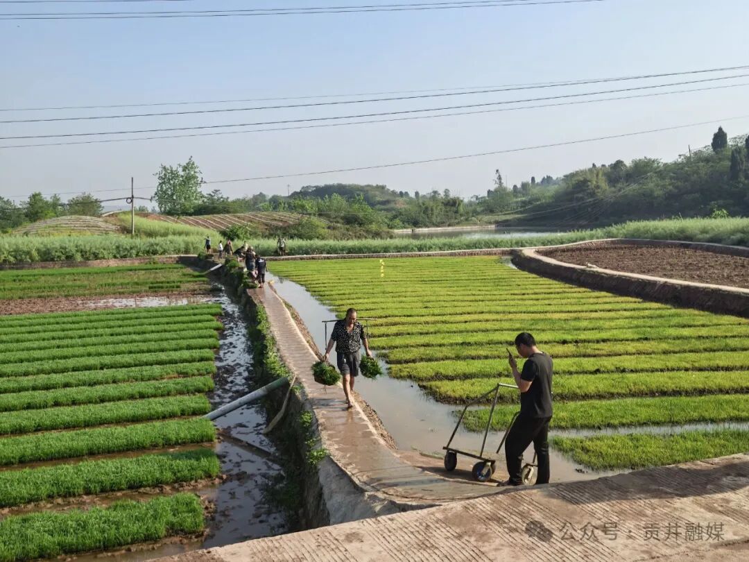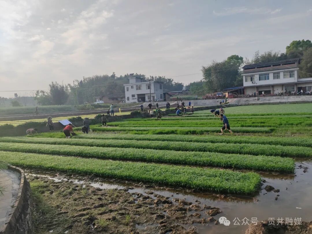"老李,你家领了50盘对吧?来搭把手,先把秧盘搬上车!"近日一大早,贡井区桥头镇增产村的集中育苗点就热闹起来。村民们或背着竹篓,或骑着三轮车、电动车,从四面八方赶来。大家脸上挂着笑,手里攥着登记号牌,围在育苗大棚前等待领取今年的水稻秧苗。