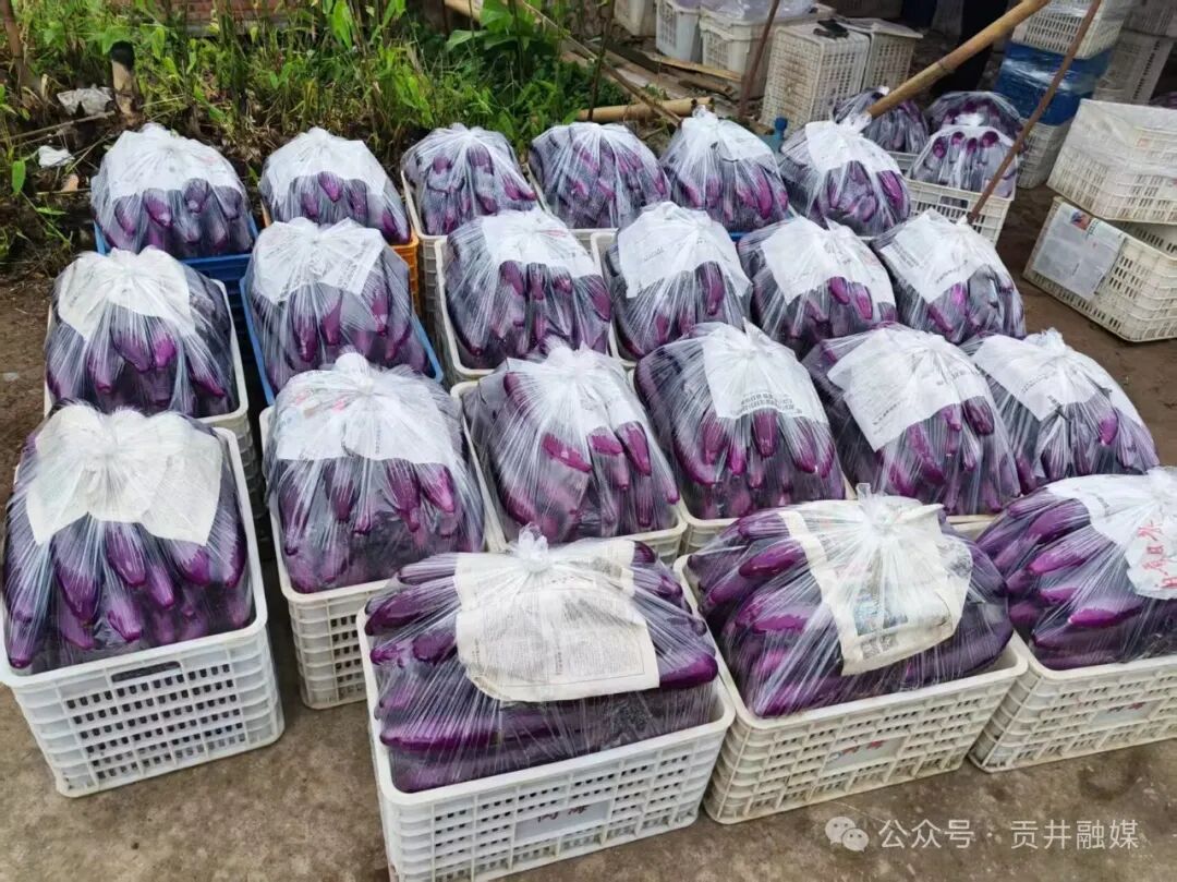 近日,贡井区龙潭镇团山村的茄子种植基地迎来丰收季,村民们穿梭田间,采摘、分拣、装车,一派热火朝天的景象。作为当地特色产业之一,紫油油的茄子成为了村民致富的“金钥匙”。