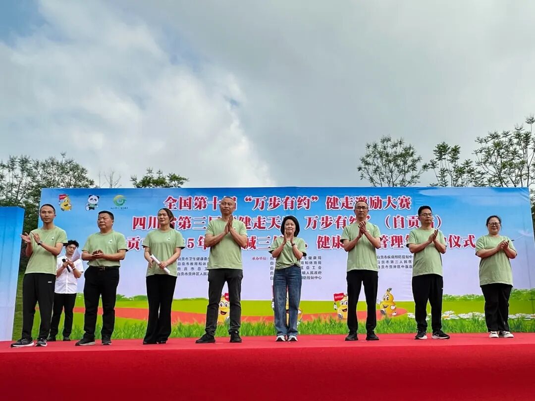 5月8日上午,全国第十届“万步有约”健走激励大赛、四川省第三届“健走天府 万步有约(自贡站)暨自贡市2025年“三减三健”、健康体重管理年启动仪式在贡井区举行。本次大赛由市卫生健康委、市教育和体育局、市总工会、贡井区人民政府主办,贡井区卫生健康局、贡井区教育和体育局、贡井区总工会、贡井区建设镇人民政府、贡井区疾病预防控制中心等单位承办,贡井区作为全市主会场,吸引了来自全市各地的关注目光,共27支代表队、500余名参赛选手汇聚于此,共同开启这场健康与活力的盛会。出席本次活动的领导有自贡市卫生健康委员会副主任、市疾控局局长吴敏,自贡市教育和体育局副局长吴文平,自贡市疾病预防控制中心党委书记、主任张正东,贡井区人民政府副区长刘江南以及区级有关部门主要领导等。