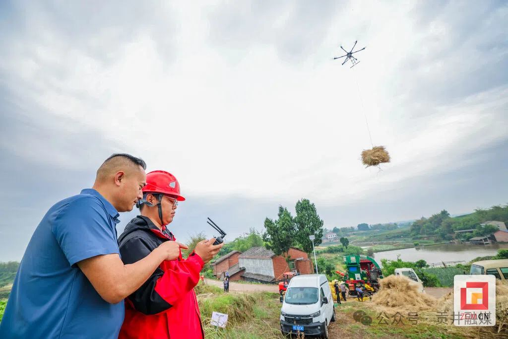 此时,贡井区人大代表、龙潭镇道澄村党支部书记王长超灵机一动。他想起去年在自贡航空产业园举行的第九届国际无人飞行器创新大奖赛盛况,脑海中闪过一个大胆的想法 —— 用无人机吊运秸秆!龙潭镇人大主席团根据代表讨论发言整理形成了“运用无人机助力秸秆禁烧工作”的建议 ,此建议一经提出,便得到相关部门的高度重视,经过研判讨论,大家一致认为该建议为破解秸秆焚烧污染顽疾,积极助推绿色处理新模式,提供了新方法。贡井区立即整合多方资源,于2025年春季试点启用无人机转运秸秆,通过“空中运输+闭环利用”实现秸秆离田效率提升300%,从源头减少焚烧污染,为打赢蓝天保卫战注入科技动能。