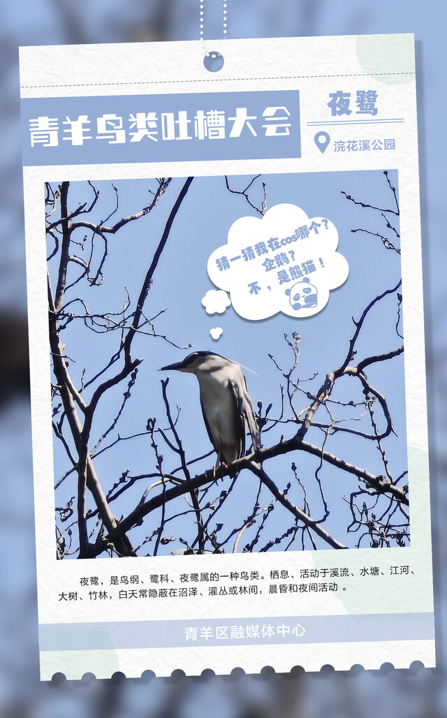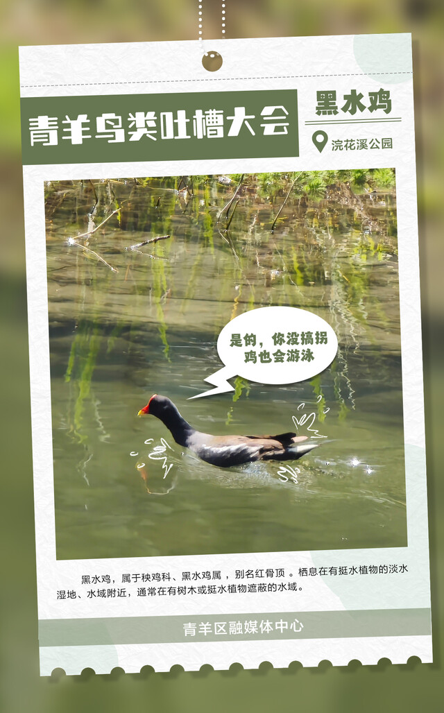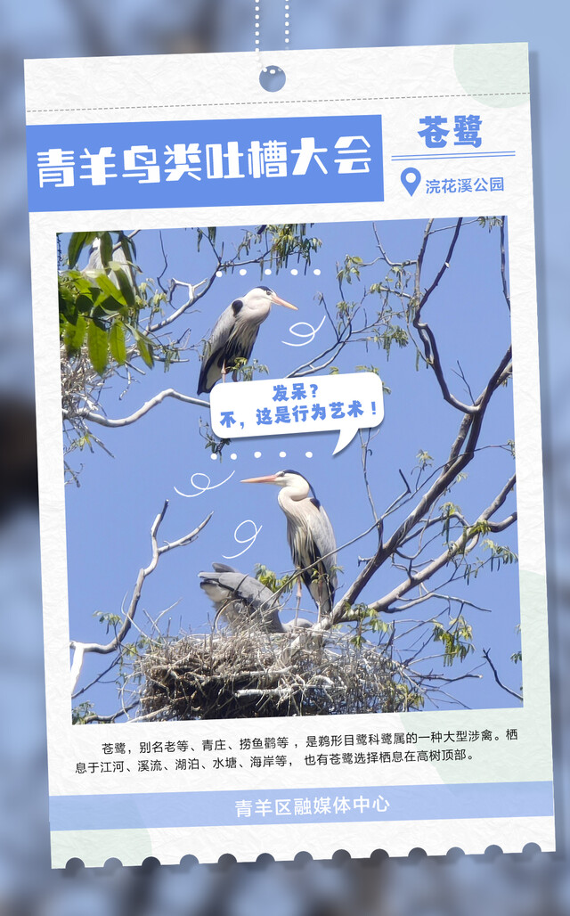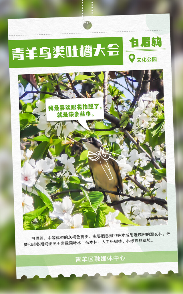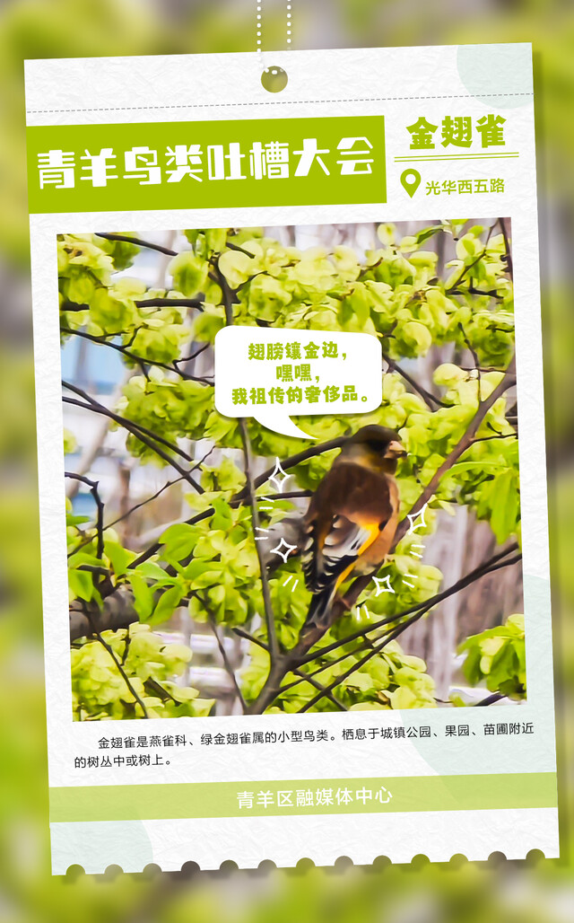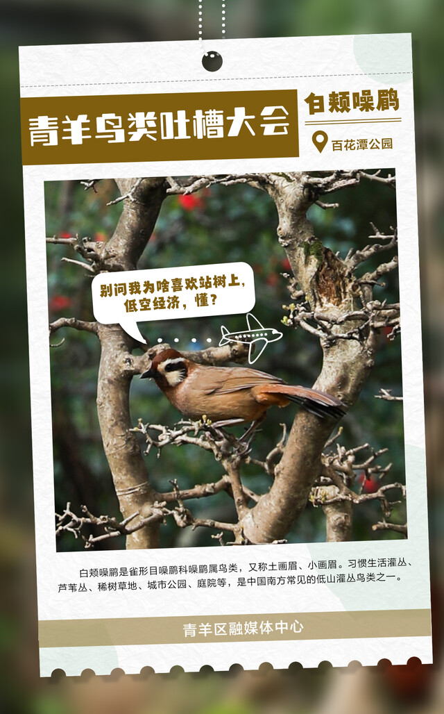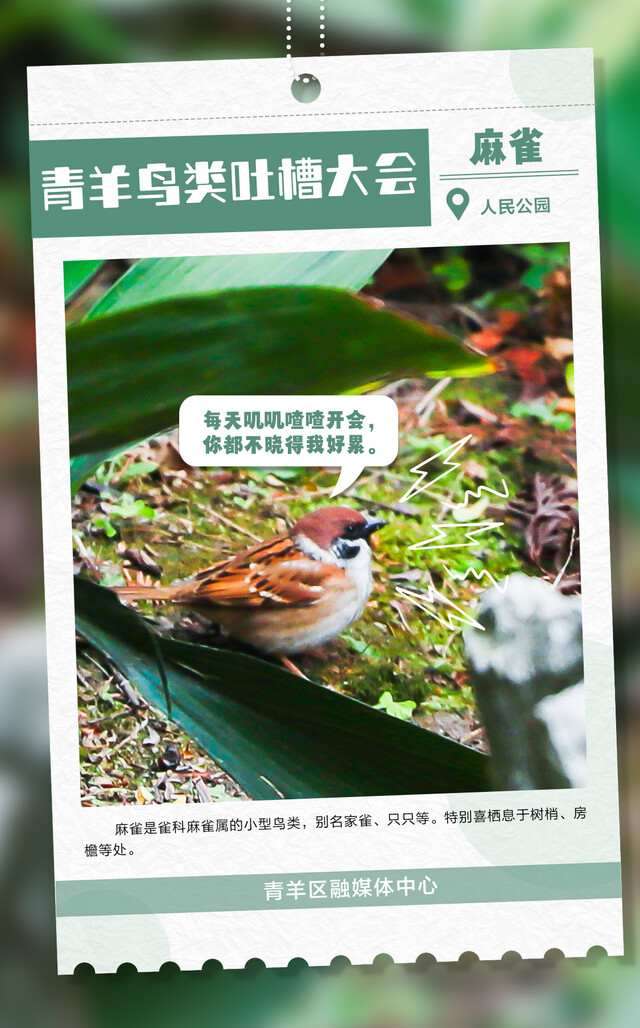 朋友们,快来围观成都市青羊区每天都在上演的“鸟类吐槽大会”!各大鸟类段子手,在线输出犀利语录,笑到人打鸣!
