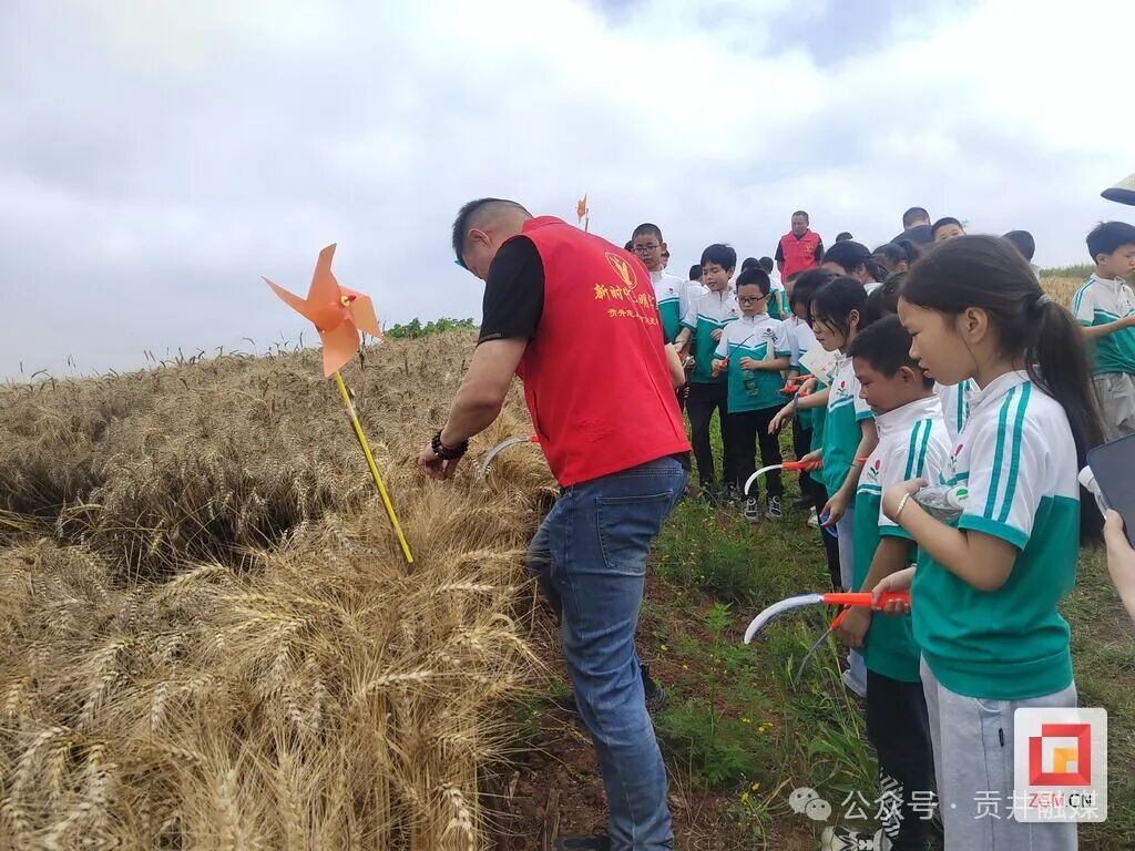 来到大刺耙全程机械化小麦示范基地,金黄的麦穗在五月艳阳下翻涌成浪。乡村振兴综合服务中心主任现场示范智能收割机的操作后,学生们手持传统镰刀体验人工收割。在麦香四溢的体验区,学生们还品尝了由麦子研磨成粉制作的传统美食“泥鳅粑”,在体验劳动艰辛的同时,也感受到了收获的喜悦。