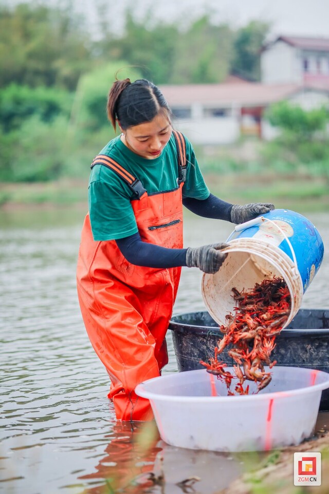 农户正在捕捞小龙虾 记者 宋姿熠 摄