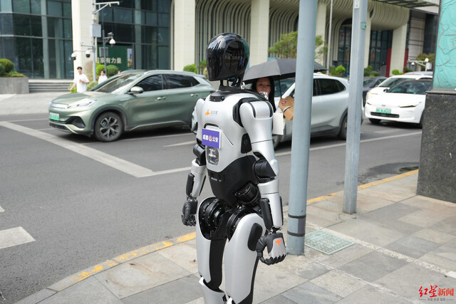 在引导行人有序通行时,“通天晓”更是动作娴熟、指挥若定。它会根据交通信号灯变化情况挥动双臂,指挥行人依次安全通行。 据了解,“通天晓”能基于终端侧大语言模型技术实现自然语音交互和用户意图理解,顺畅自然地回答行人提出的问题,不仅能科普交通知识,如闯红灯的危害等,还能讲冷笑话。同时,它还能结合视觉、听觉等多模态感知完成交通劝导指挥、避障行走等任务。