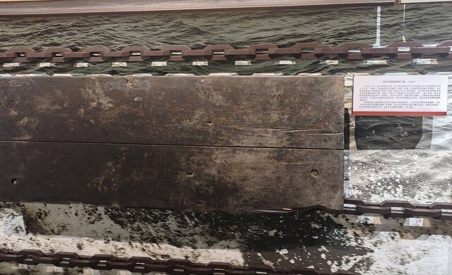 红军夺取泸定桥时,当地群众拆掉自家门板给红军送去。图为甘孜百姓卢献云曾借给红军的木板,现在红军飞夺泸定桥纪念馆。