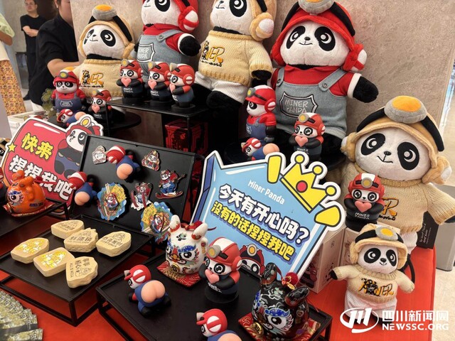 同样吸睛的,还有四川西行驿站文化旅游发展有限公司带来的“矿工熊猫”系列文创产品。“大家看到的‘矿工熊猫’,是我们在大邑县基于斜源当地文化孵化出的IP。”该公司副总经理丁玺佳介绍,因大邑县有新源煤矿,又地处大熊猫国家公园,所以有了这个独特的名字。