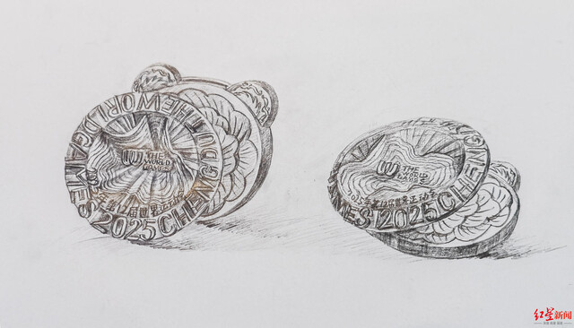从设计草图到修改定稿,整个奖牌设计项目共耗时约5个月。“我们的团队位于厦门,设计过程中,团队多次从厦门来到成都进行实地考察,前往金沙遗址、成都博物馆、成都大熊猫繁育研究基地等地感受成都的历史文化与城市特色。”成都世运会奖牌设计团队成员吴福来在采访中表示,“在外观设计上,我们尝试突破传统综合性运动会奖牌纯圆形的造型,设计成大熊猫‘蜀宝’造型,在熊猫的耳朵上,巧妙融入了太阳神鸟纹饰。在奖牌的中央,我们还用凹凸线条展现了城市的轮廓,同时循着光的轨迹,呈现出世运会的英文字样,既彰显中华文明、巴蜀文化的璀璨历史,更象征着运动精神永恒闪耀。”