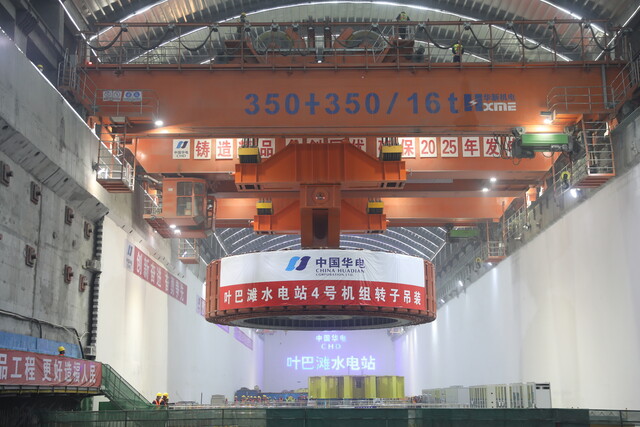 金沙江叶巴滩水电站首台机组转子成功吊装。资料图片