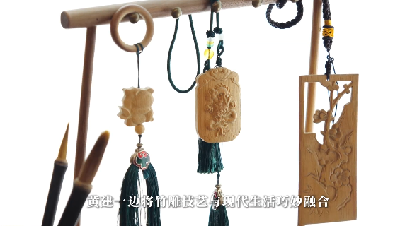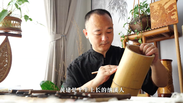 黄健一边将竹雕技艺与现代生活巧妙融合,打造出臂搁、步摇、竹枕、笔筒等兼具实用与美学的竹雕作品,让传统工艺更加贴近生活;一边积极投身非遗保护与传承,在纳溪诗书画院开设专题课程、走进校园开展青少年竹画辅导等,传播竹雕技艺和文化,让历经时光沉淀的非遗技艺,在创新实践中焕发新生……