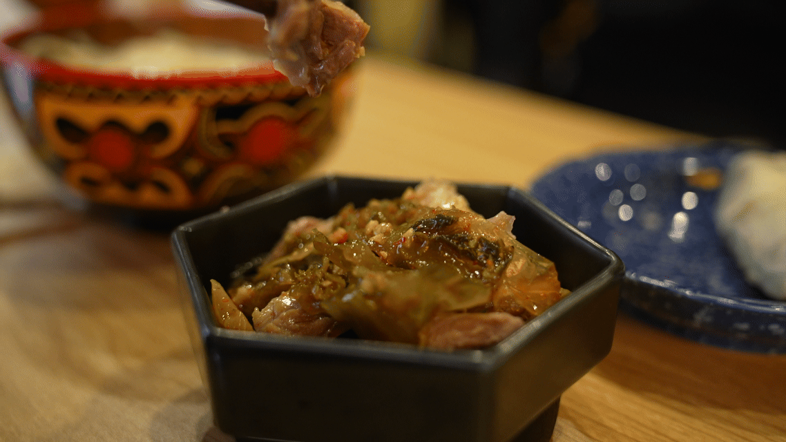 玻璃门虚掩间,每当食客推门而入,都会立刻被食物的香气勾住脚步——餐厅主理人、来自大凉山的俄者鲁席与儿子阿库拉银正穿梭于厨房与餐台之间,忙碌中,一道道带着大凉山温度的彝式美食新鲜出炉。