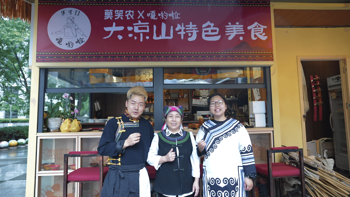 2023年10月,宁波首届城市火把节在宁波市鄞州区南部商务区山丘市集民俗风情街区火热开启。活动齐聚了凉山40余家独具民俗风情的品牌商户,“嘎哟啦”餐厅也在受邀之列。短短一个上午时间,俄者鲁席带来的三盆金豌豆凉粉销售一空,受到宁波本地游客的青睐。