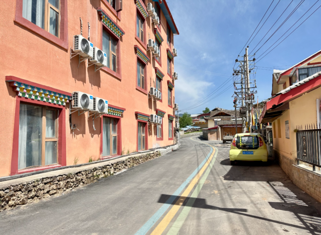 记者跟随游客队伍走进村子,脚下是宽敞整洁的硬化村道,远处是群山环绕的碧绿葱茏,近看是错落有致藏式房屋;村道两侧路灯整齐排列,大小车辆畅行无阻;酒店民宿鳞次栉比,乡亲游客往来穿梭;房前屋后的田地里庄稼茁壮成长,身着藏装的姑娘小伙精神抖擞,山巴藏寨的和美之感扑面而来。