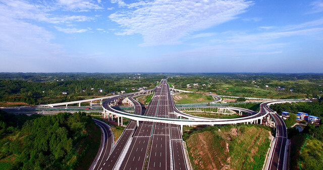 位于眉山市仁寿县的成都经济区环线高速公路——成自泸赤高速公路枢纽互通。眉山市交通运输局供图