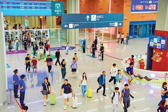 旅客走出高铁站