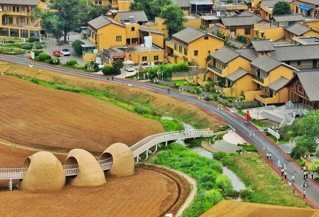 6月23日,2025年“万千气象看四川”二季度主题采访组来到德阳市中江县觉慧村时,眼前的景象打破了记者对“挂面村”的固有印象——曾经的青石板被拓宽为平整的绿道,两侧是以“挂面”“鸡蛋”为原型打造的景观装置,远处观光“小火车”穿梭在田垄间……