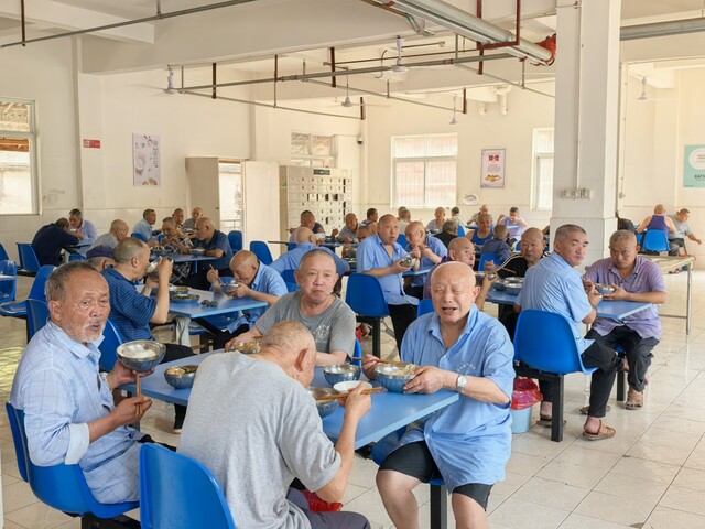 中和镇中心敬老院的老人们正在用餐。