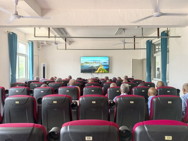 老人们正在电影院看电视。