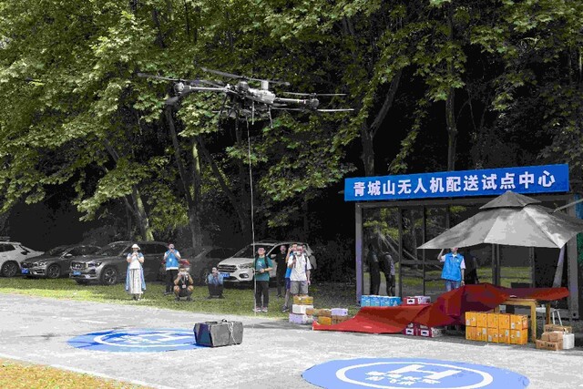 移步都江堰, 低空技术深度融入了文旅运营。今年5月起,青城山景区启用的运载无人机承担起了物资即时配送任务。据介绍,有了无人机后,原本靠人力需要40分钟的运输路程,现在最快5分钟就能搞定。这不仅让商户每斤物资运输成本最高节省30%,时间更是惊人地节约了95%以上,极大地提升了景区运营效率。