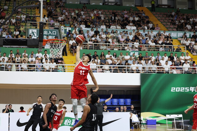 下半场,中国队迅速调整战术,13号球员张懿赵杰与11号球员张淳智成为进攻主力。在比分一度落后的情况下,张淳智接队友长传,高高跃起,完成一记势大力沉的单手重扣,将比分追至45:46,瞬间引爆全场。“雄起!”“雄起!”……欢呼声不绝于耳,士气大振的中国队乘势反超,最终以77:71锁定胜局。